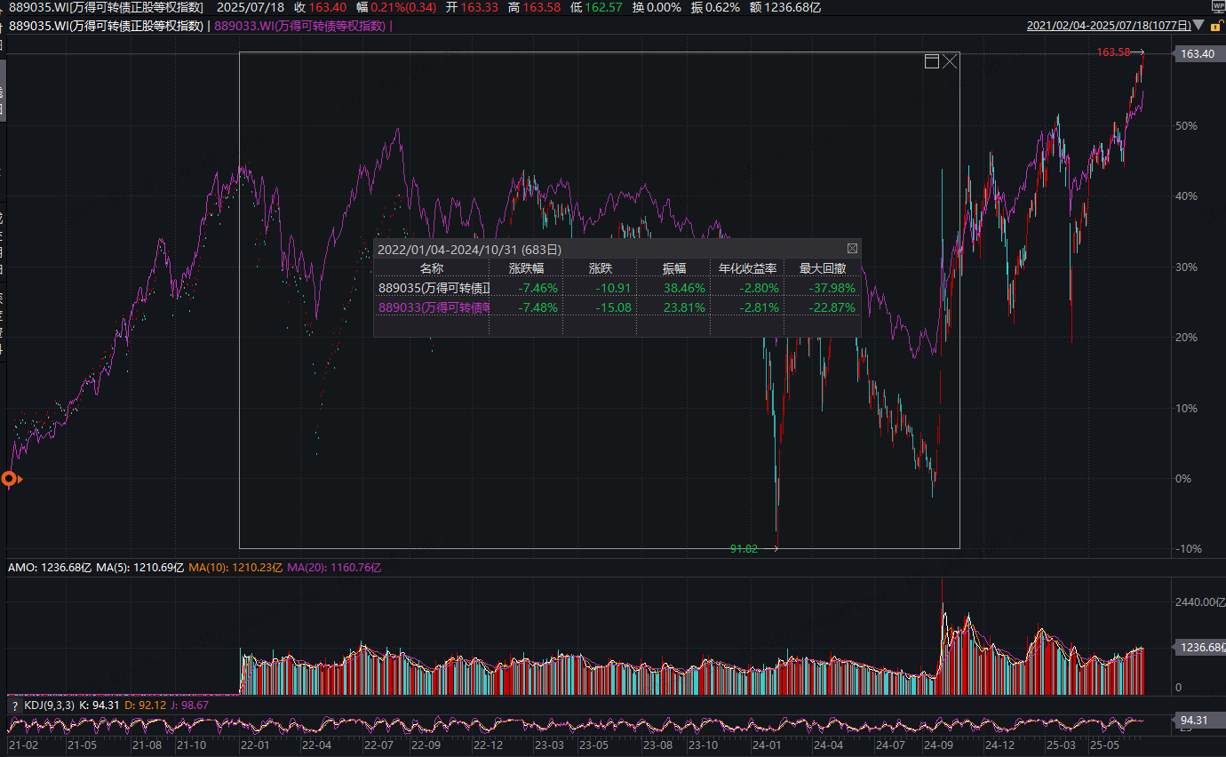 转债正股:累计收益-7.5%,最大回撤38%;转债指数: 累计收益-7.5%,最大回撤23%。