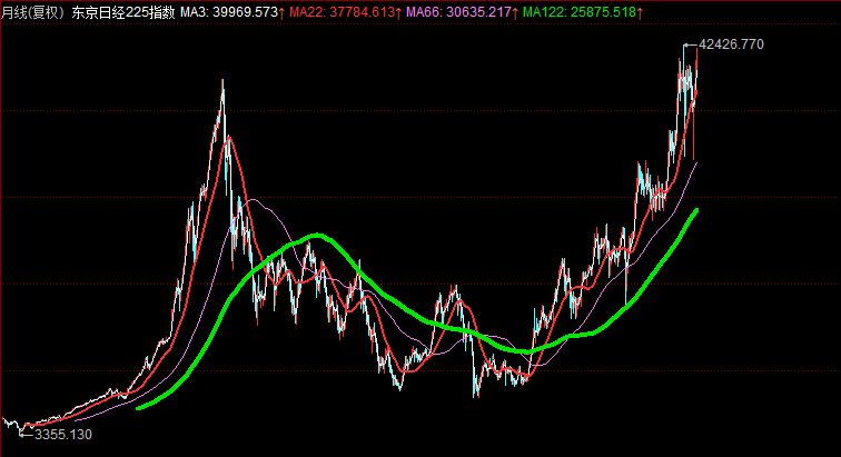 嘿,看见日经225指数1989年12月38957点的那个山尖尖了么?找到2008年10月6994点的那个最低谷了么?又是发生了什么,使指数从2012年10月的8488点涨到了2024年10月的42426点?如何应对下跌大周期?如何在下一个大周期来临之前提前做好准备?这些都值得思考。