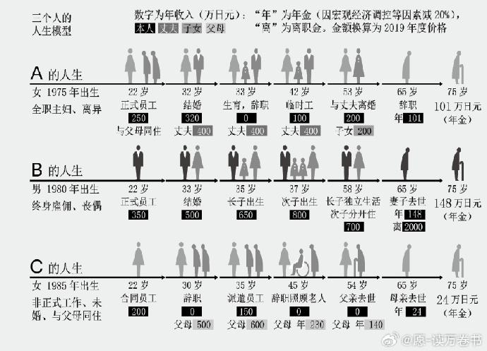 2. “团块次代”是迷失的一代。工作时遇到就业冰河期。书中“团块次代”年龄为47岁左右,大学毕业时约为1993年~1997年,恰遇日本经济泡沫破裂并叠加亚洲金融危机,步入了就业冰河期。大部分企业大幅缩减应届生招聘规模,同时政府允许企业雇佣劳务派遣工,“团块次代”当中很多人以非正式员工(正如当下的铁人三项+吉祥三保),直到中年仍然没有稳定的工作和收入。生活窘迫前途迷茫。“7040现象”“8050现象”层出不穷,出现了中老年人“家里蹲”“啃老族”以及老年父母与子女同住,家庭形态出现变化,终身未婚、终身未育的数字不断升高,看不到有希望的未来。为了自己养老,“团块次代”不得已终身工作。