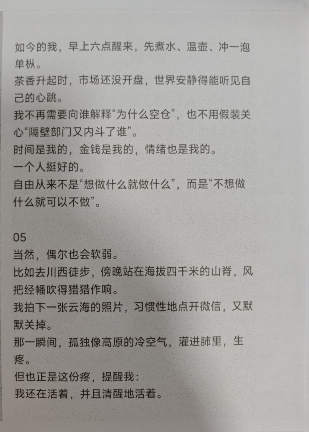我不再需要向谁解释“为什么空仓”,也不用假装关心“隔壁部门又内斗了谁”。