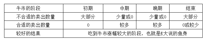 表中的可能性用文字表述是,我们想要的结果就是在牛市中期开始卖,尽量多卖在牛市中后期。不想要的结果是在牛市早期就卖出,或牛市结束才卖。