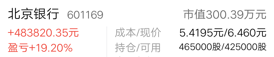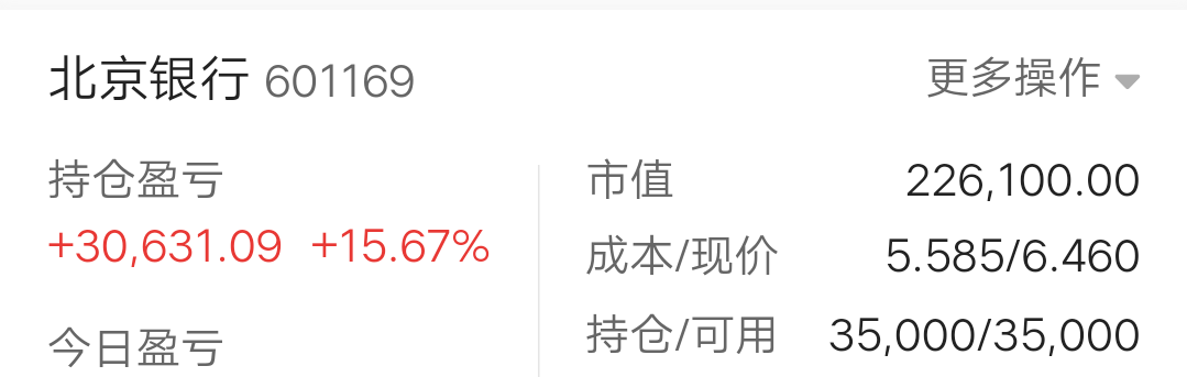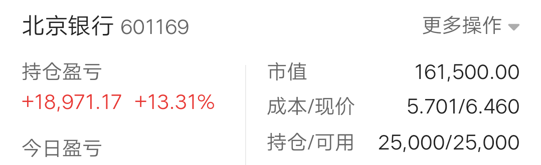 厉害,三个账户单一一个北京银行?因为银行股一般都很同质化,严监管下爆雷风险小,所以,单调一个可以接受。