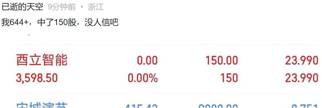 据说北交所新股酉立智能碎骨门槛647w,大家都中到了吧?