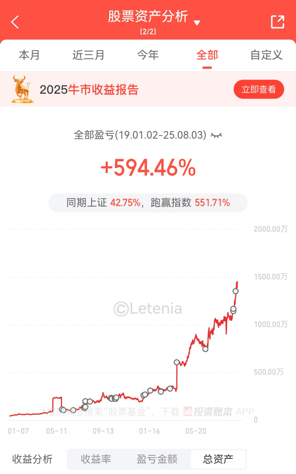 下面说回投资领域。我是14年入市的,起手就遇到了牛市,但前几年没有经验,资金也少,反复折腾,整体算是赚了个寂寞,但也算完成了市场教育。从19年起,我凑了100万家当正式起步,过程不表了,到23年10月是300万。拆迁款到位后,我资金变成了580万,总体还是受运气加持,到上周末的8月1日,资金是1400+。由于整个过程很短,两年时间可投资资产增加了1100,我没能有太直观的感受,但上周最后一笔拆迁款拿到父母和我说的时候,我才有了实现资产跃升的实感,回头看,这两年几乎是我人生中最重要的两年了。