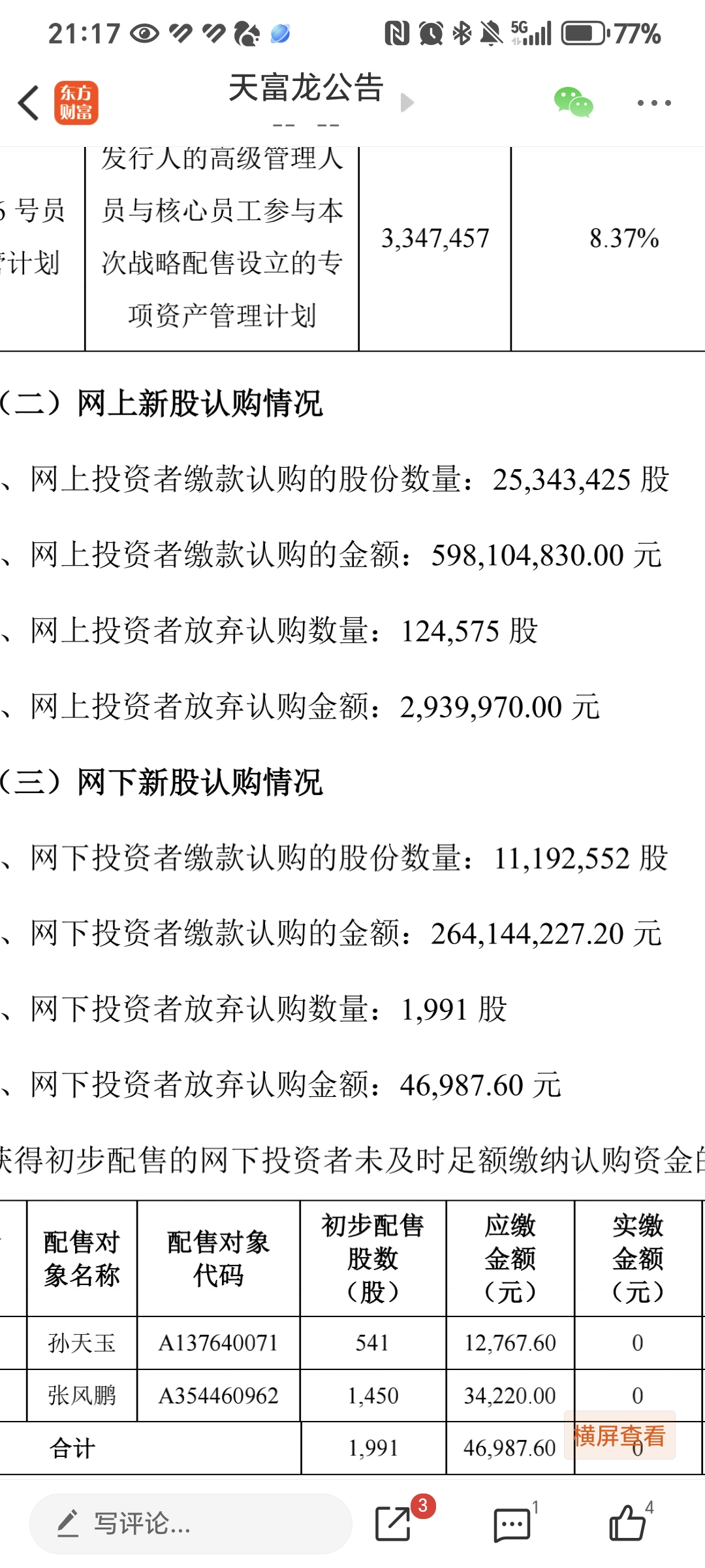 难得中个新股,没事看看公告,居然弃购接近300万元。