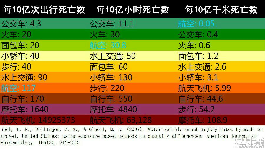 现在小命值钱,能不坐飞机就不坐,高铁10小时以内都坐高铁。交通工具的安全系数排名是,铁路、公交大巴、飞机、自驾小车。网上传言飞机是最安全的交通工具的说法,其实只是算法不同,按每百万里程飞机是最安全,但按每百万乘客数、每百万出行次数,飞机的事故率都很高。统计数据中最不安全的是小车,我自己的体验也是如此,回想自己20多年开车经历,鬼门关都兜过好几次了,所以现在很少开车,尽量打车。