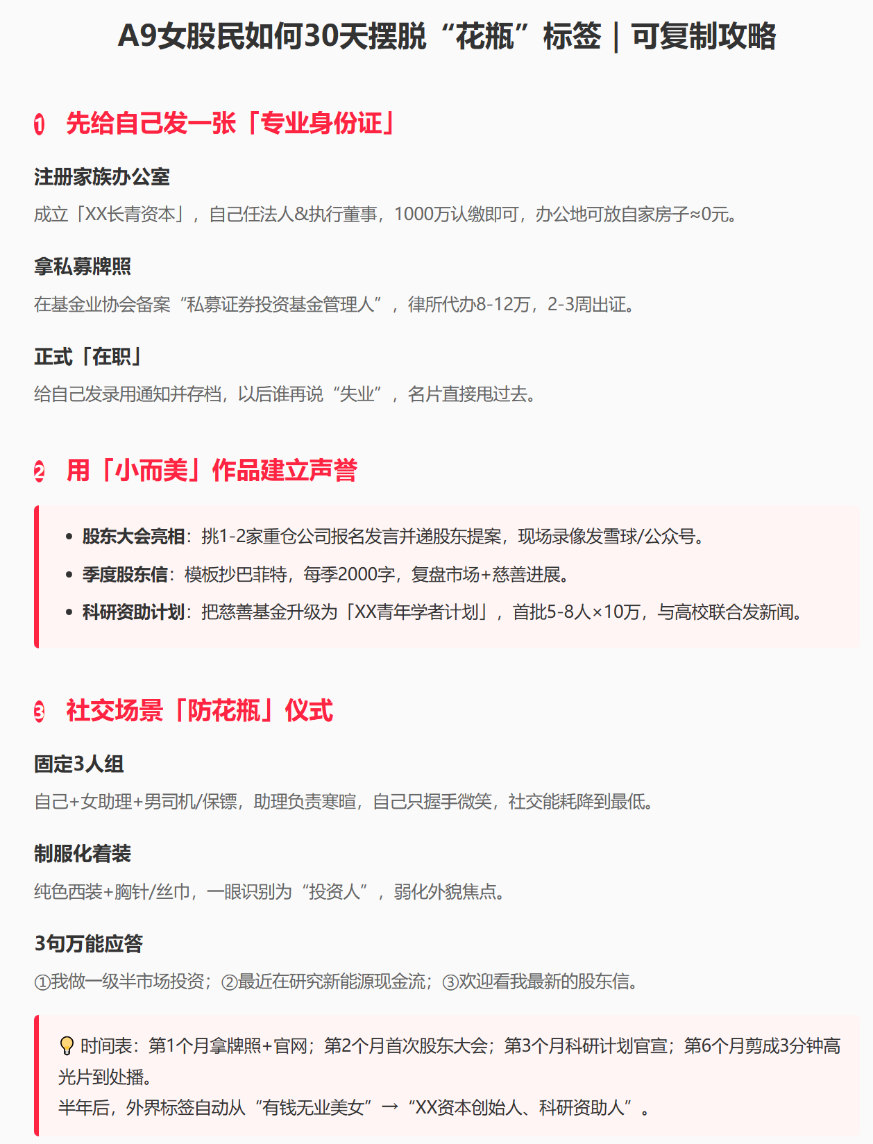 至于社会地位,其实也简单,开个视频或写写投资心得就行,类似今天的内容,大家不都感兴趣吗?有干货又有钱被认可的也很快。