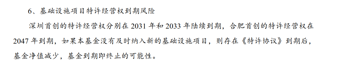 如果本基金没有及时纳入新的基础设施项目,则存在《特许协议》到期后,基金净值减少,基金到期即终止的可能性。