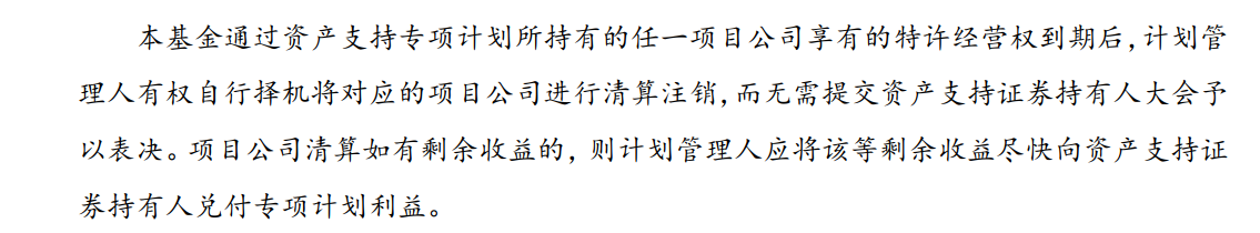 剩余收益分配:若项目公司清算后有剩余收益,计划管理人会将其向资产支持证券持有人(即基金份额持有人)兑付。此时持有人可能获得部分或全部本金及收益,具体取决于资产处置结果。