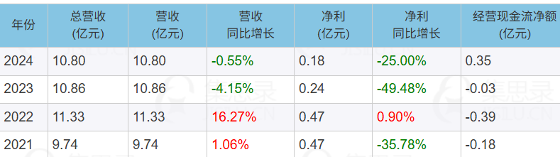 2024年,公司经营净现金流0.35亿元,2023年2022年2021年,经营现金流均为负。