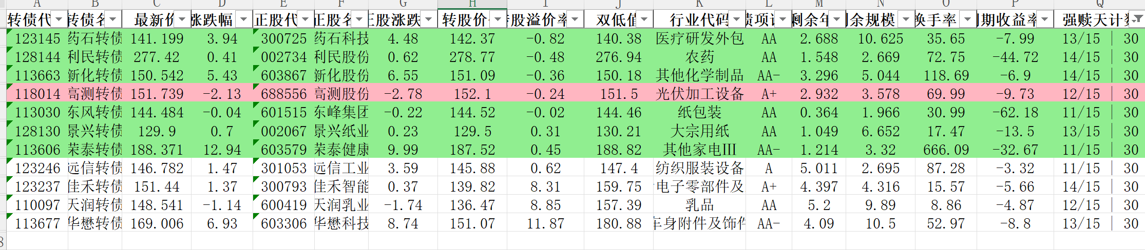 以下是上周末选债:(个人选债记录,不做为投资建议)
