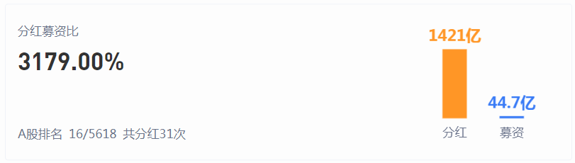 补个内容,必须得提一笔,格力电器,回归股东的优等生,百里挑一的好公司,原始募集44.7亿元,累计分红31次,共1421亿元。