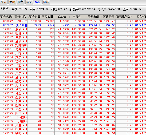 因金轮转债表现超预期,从持有800张减至100张,剩余部分作为后期观察标的。