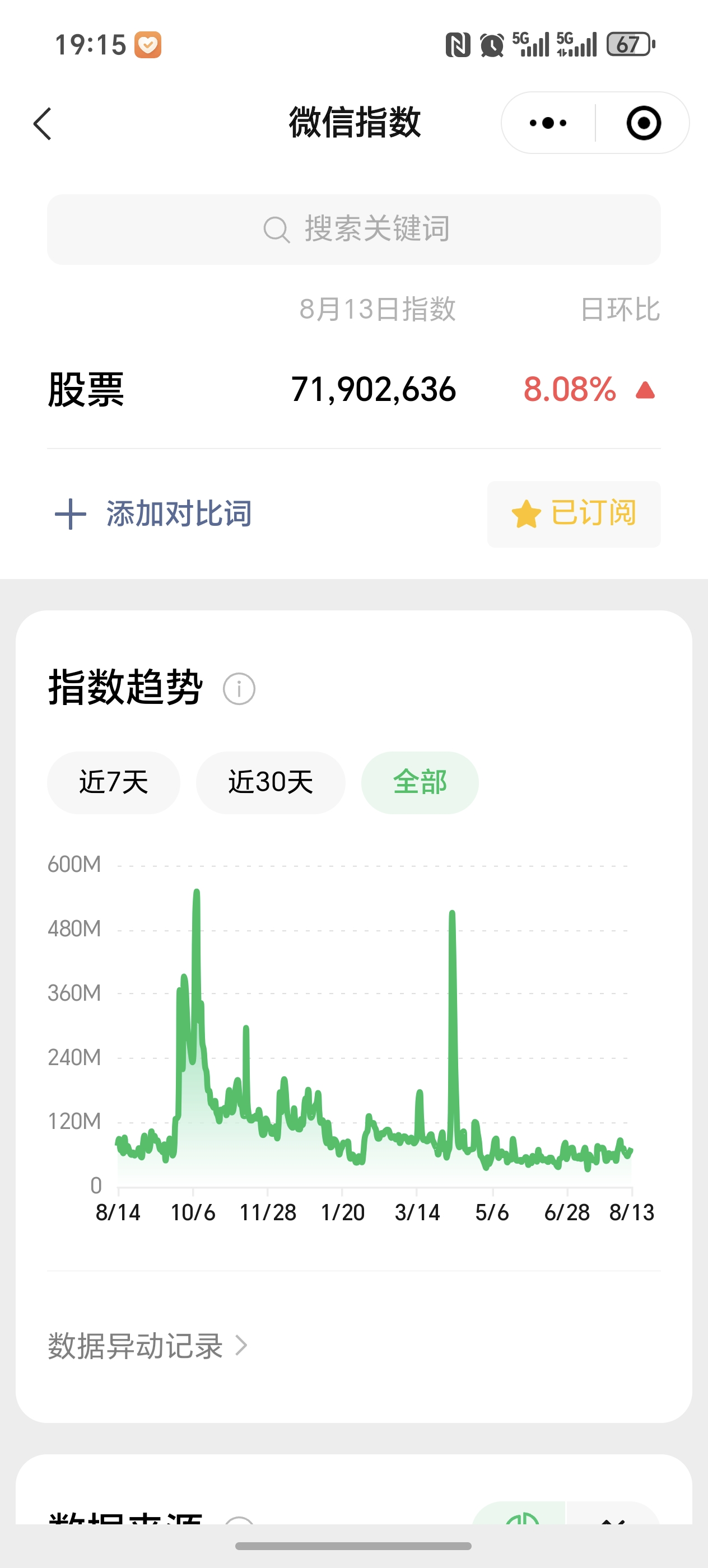 “股票”关键词怎么还不火呢,今年热度好低,去年4月和10月热度高