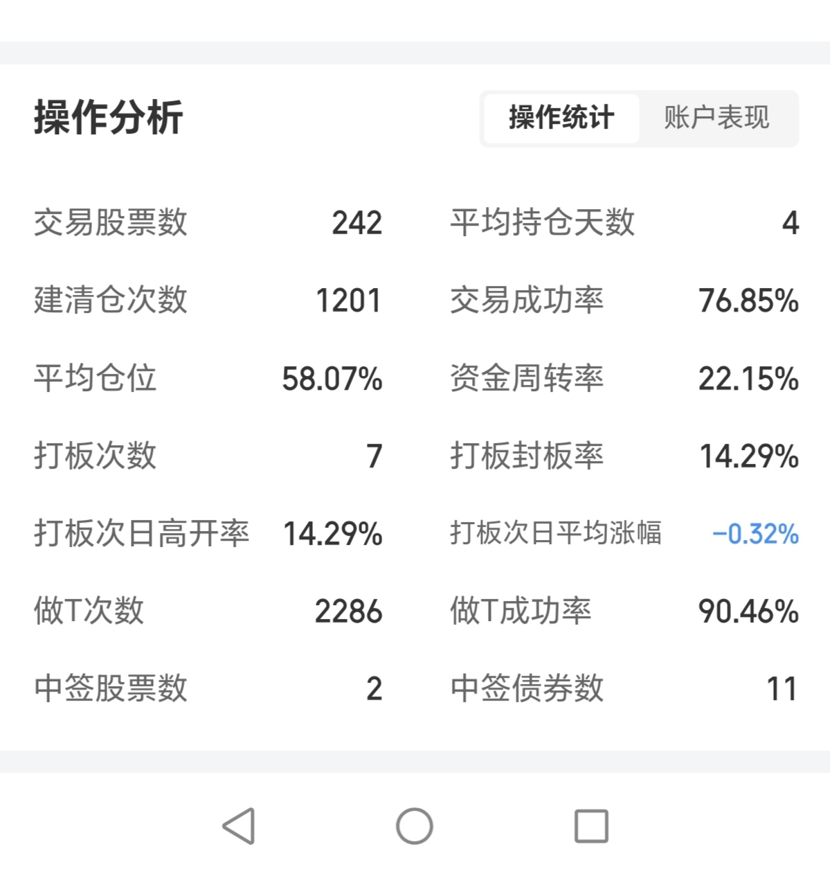 您好,请问您这样一天下来买和卖的总额 120 万左右,是您的资金 50 万的 2.4 倍对吗?是否太频繁了?您大概什么时候开始做的,做到现在年化收益率大概是多少能告诉一下吗?