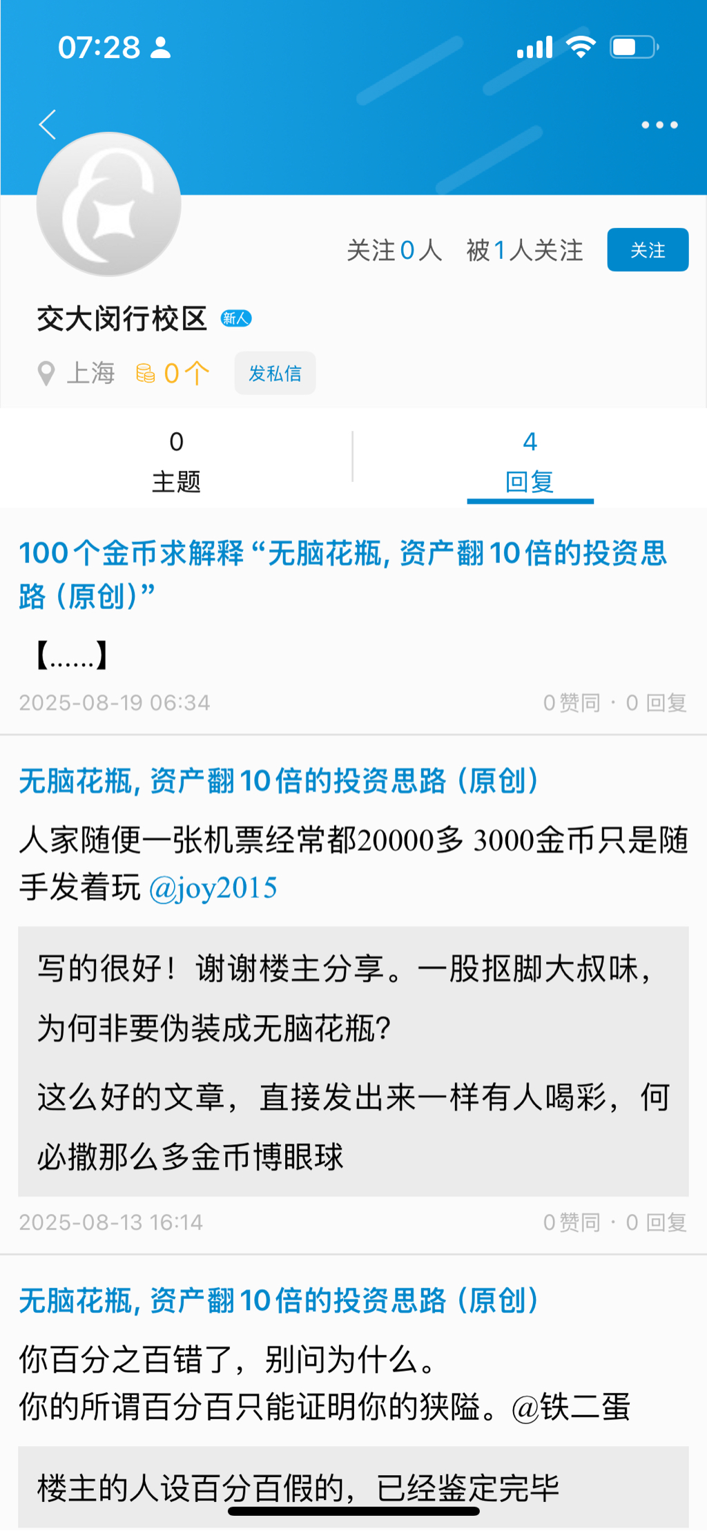 富婆的几个帖子我都没看每天纠结如何换仓麻烦管理员看看啥情况 为啥老at我