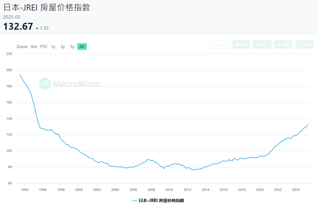 参照日本,2013年以来,日本房地产经历了长达12年的牛市(还没涨回泡沫经济破灭时的水平,不知道谁传的谣言)。