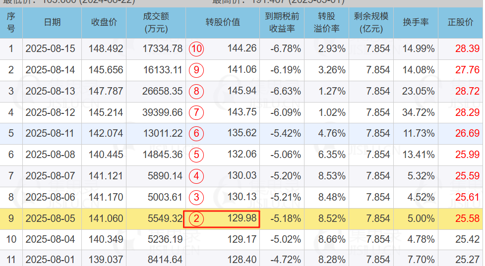 永和转债8月5日转股价值129.98网站也算强赎数了一天,麻烦休整一下算法吧,强赎数日子不低于130的转股价值的。