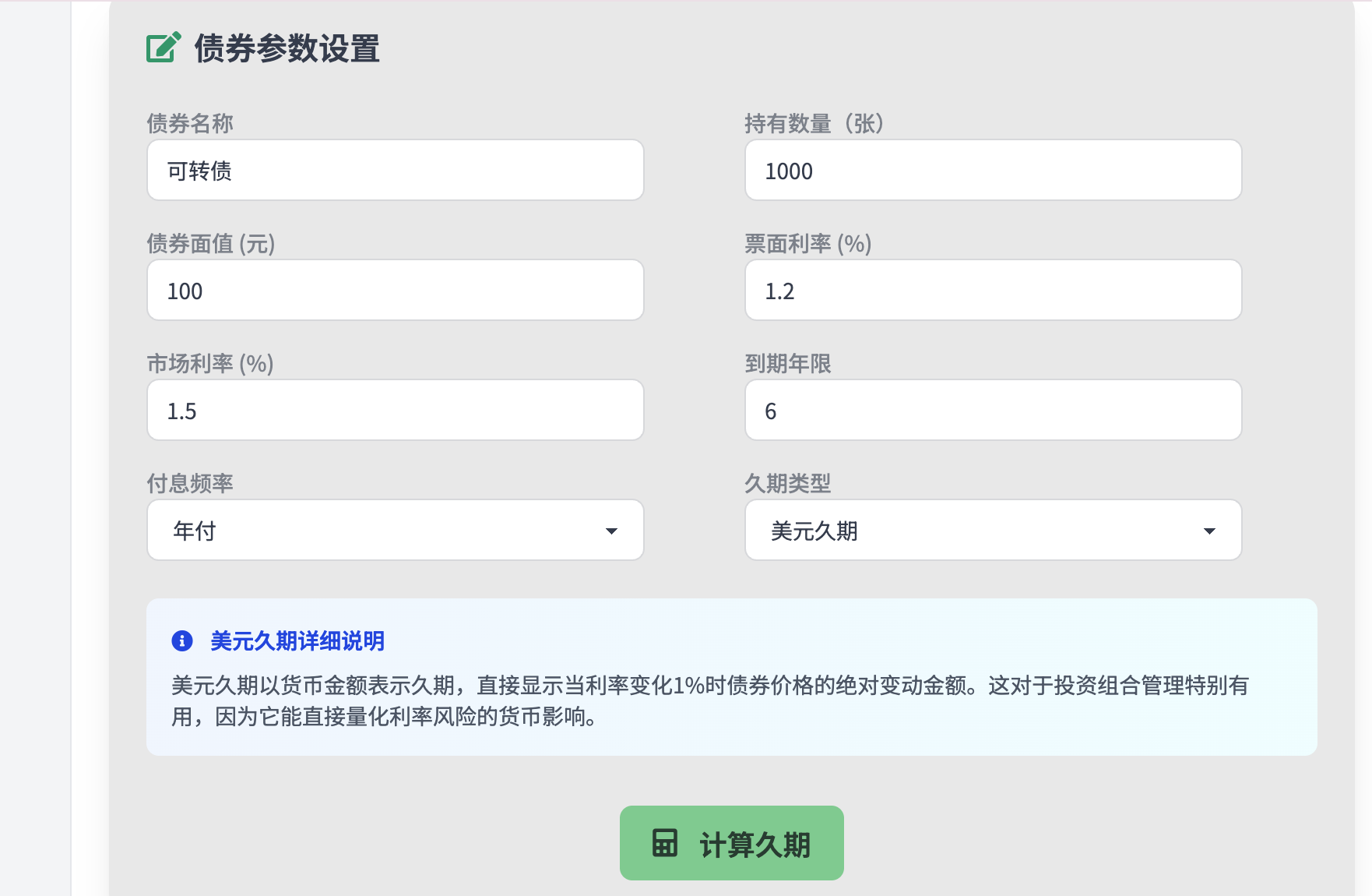 用AI写了一个债券久期计算器 ,测试一下大家有修改意见跟帖马上改