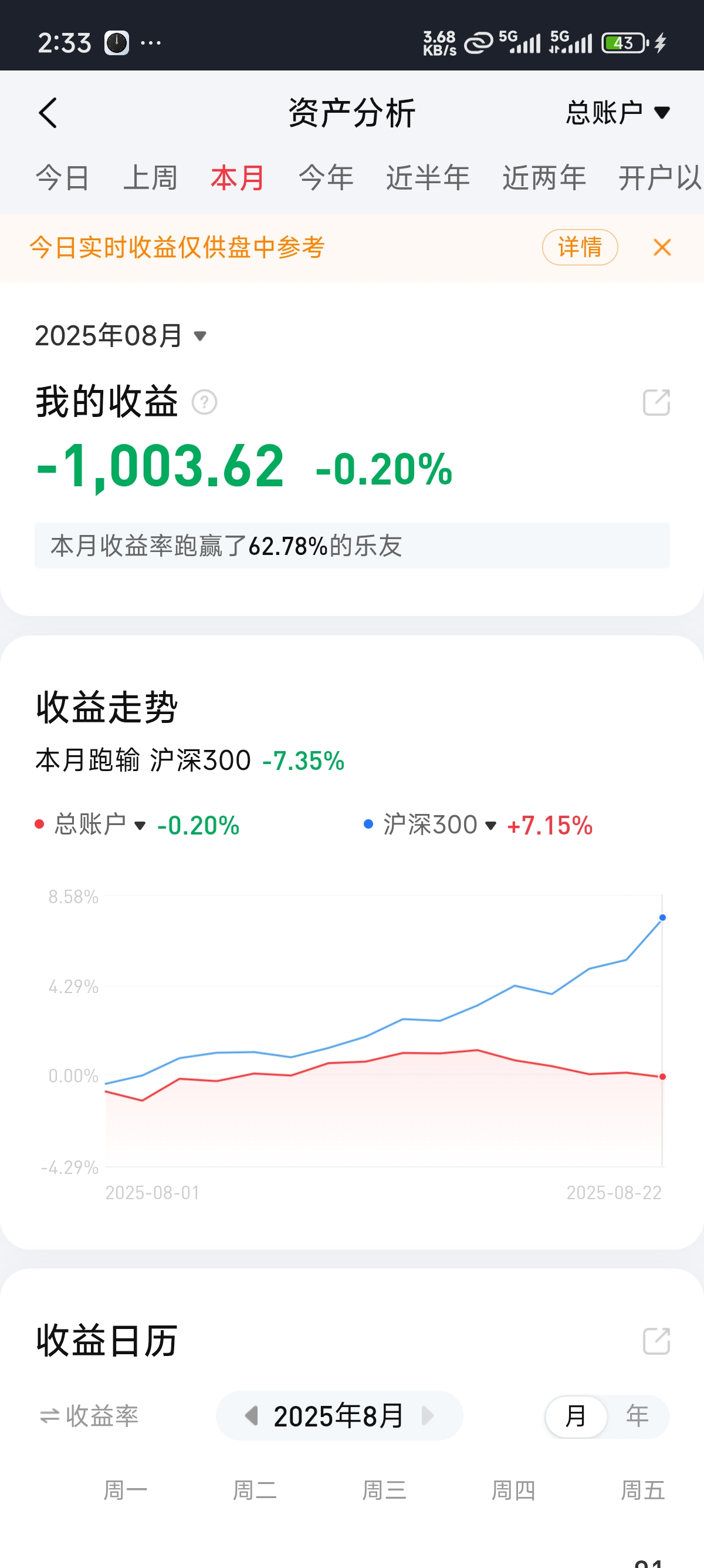 本月收益跑赢了62%的股民(华泰的一个账户)