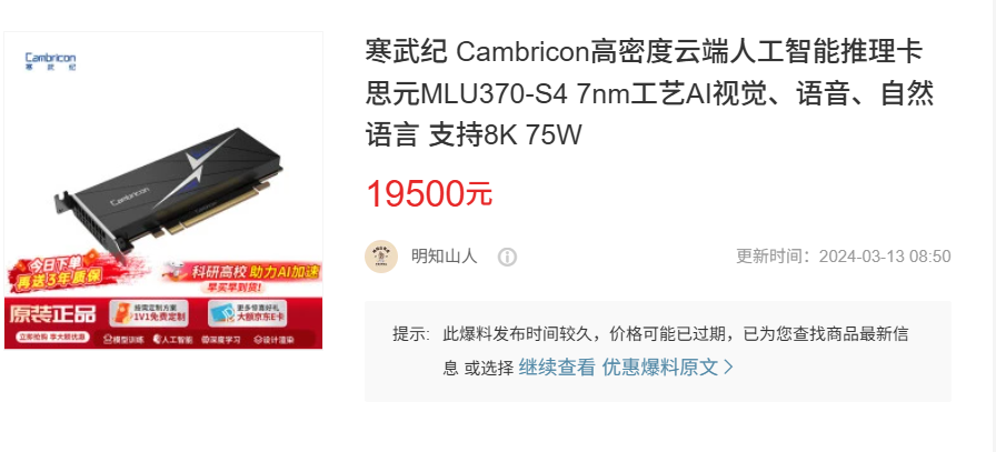 现在双方的卡,华为卖十多万,寒武纪卖几千。