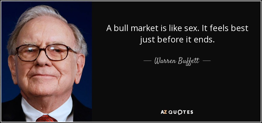 “A bull market is like sex. It feels best just before it ends,” Warren Buffett said, quoting legendary investor Barton Briggs.