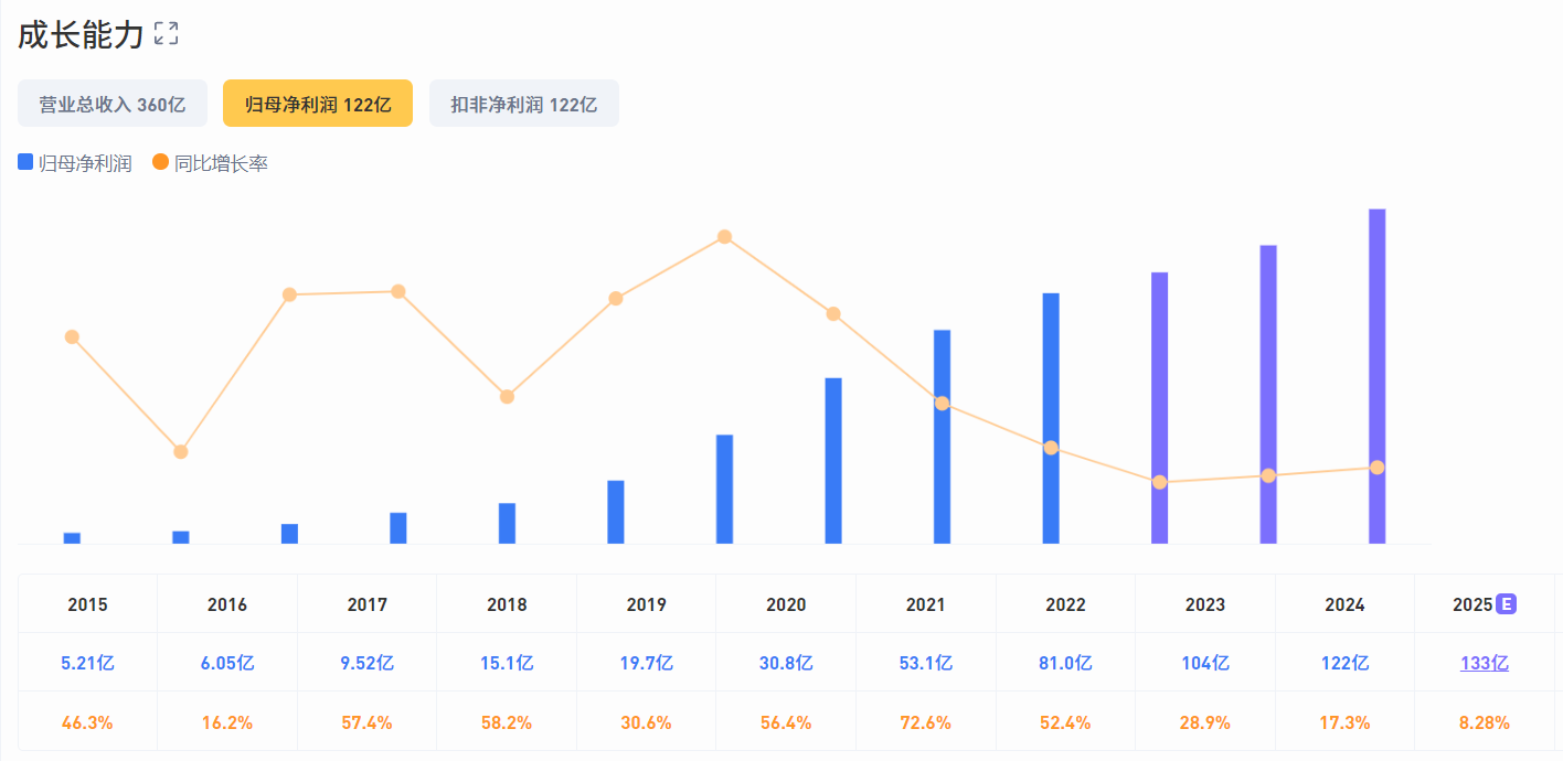 高利润增长率,没毛病。历史利润增长算是很快的,有多年能达到40-70%!机构预测利润增长放缓,可能降到个位数。但是,没毛病,利润增长率满足我的预期。