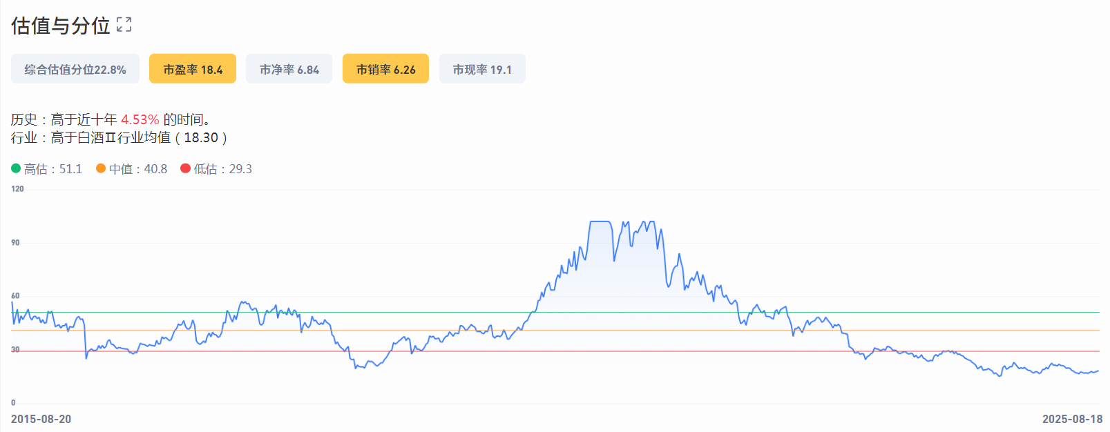 汾酒的PE百分位,是过去十年最低的4.53%位置,非常低,说明大概率是低估的。