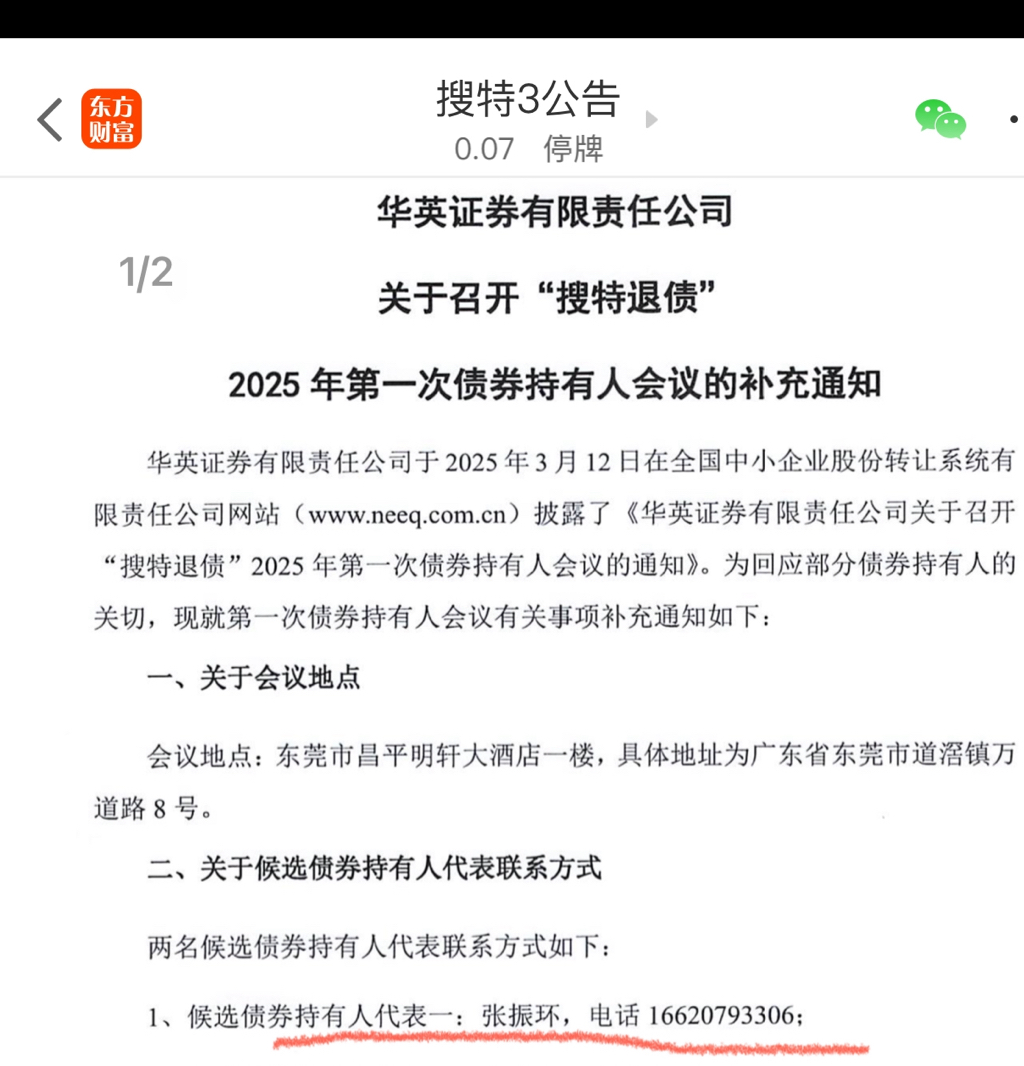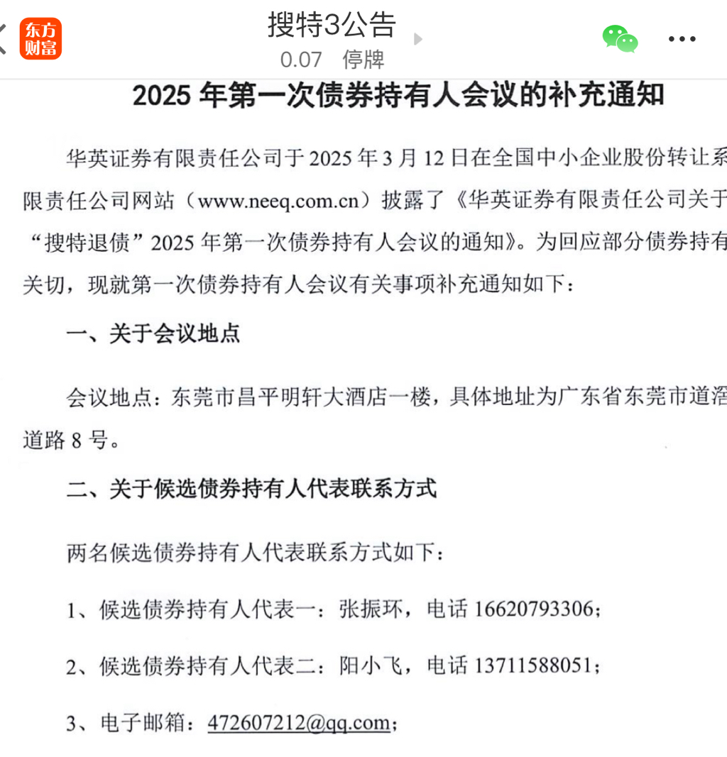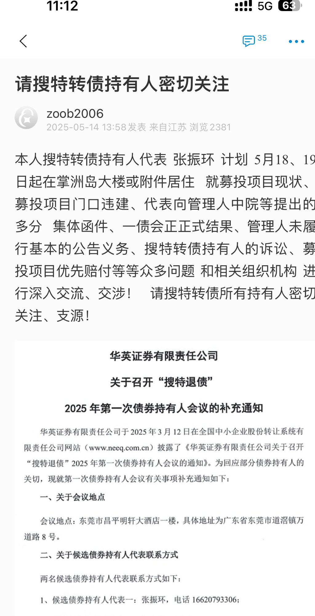 请搜特 退债持有人关注 支援 搜特退债重大持有人会议!