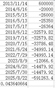 我也闲得无聊。假设13年最后一个出现6元价格的那天买入。用XIRR函数计算了一下,年化只有4.364