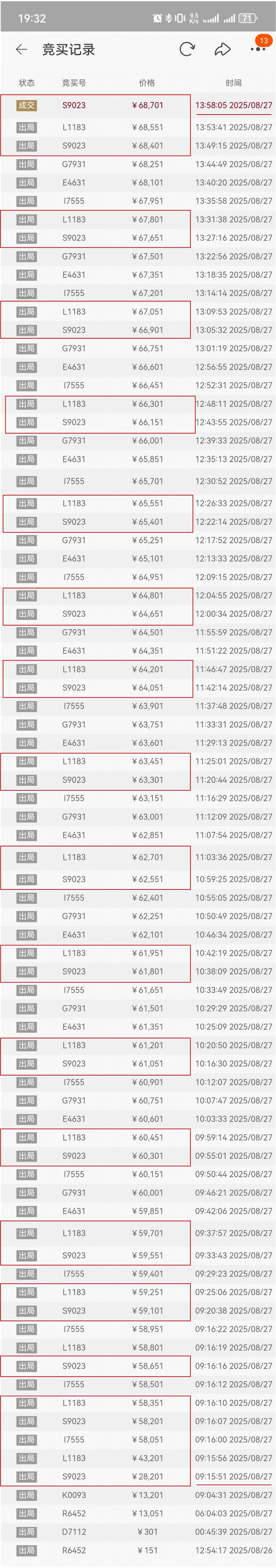 从竞拍明细看,Q6955以一种势在必得的姿态不停加价,甚至后边几条记录也能看出来,加价的方式都是跳空高举。如果是普通小散拍卖,应该会按照系统设置好的价格阶梯,一次只往上报一格,不会上来就扫卖5的成交。