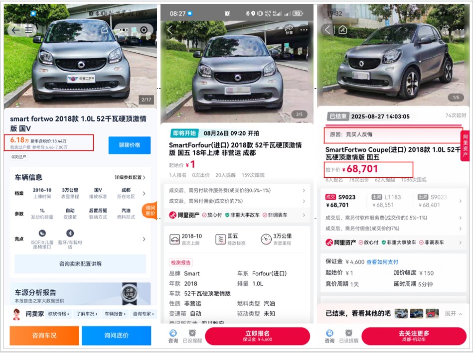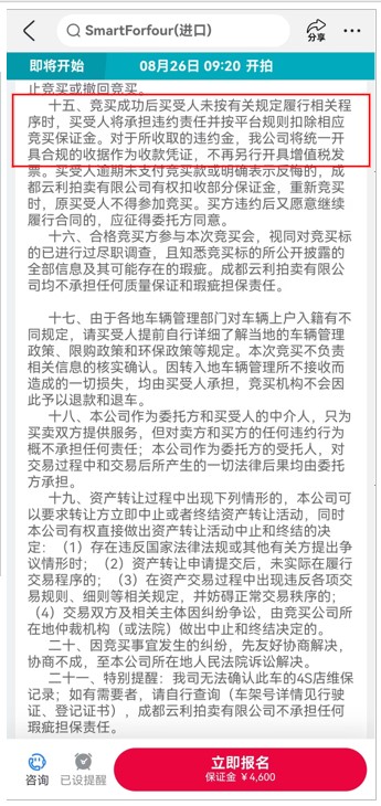 随机点开页面推送,是一辆Smart,起拍价是非常诱人的1块钱。