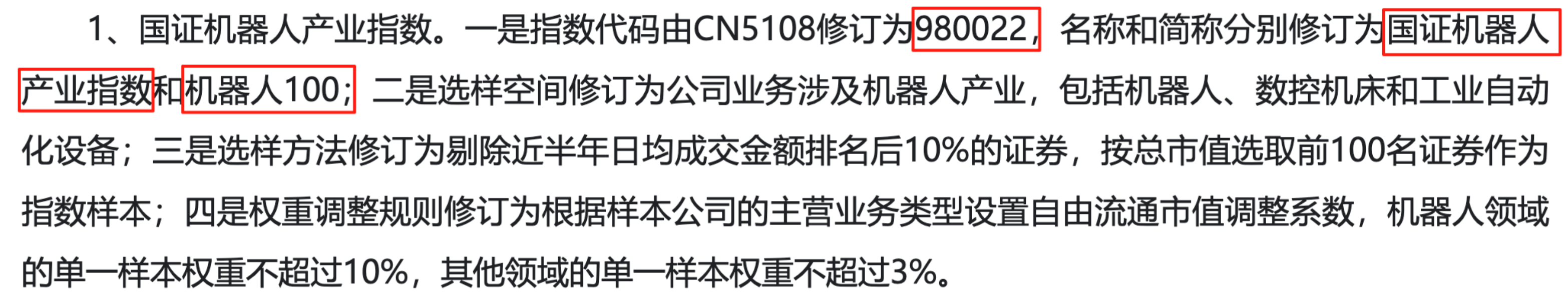 159278、159530和159559这3只ETF跟踪的是“国证机器人产业指数”,代码980022,简称”机器人产业”,而不是“机器人100”,请及时更正。