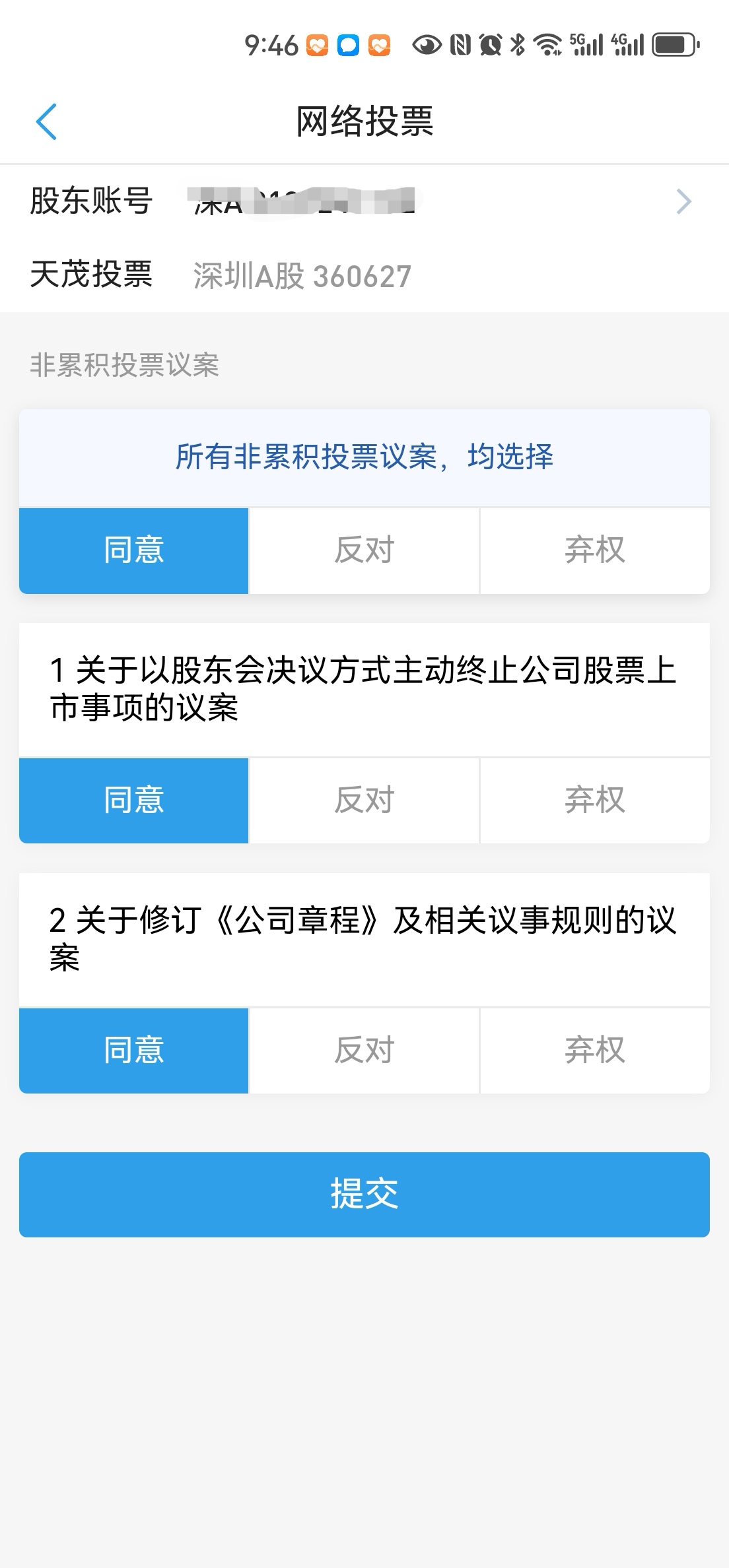 开盘就开始上涨,无事可做,先完成了ST天茂的赞同投票...
