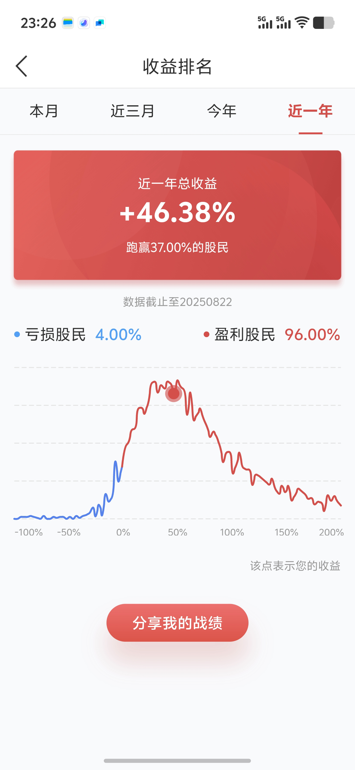 今年的统计数字是中位23%,实际上偏正态分布的话,大概率是80%的人收益率还低于这个标准。身边统计学告诉我,我身边还只有一个可能是26%左右,其他人都还没有超过这个的。