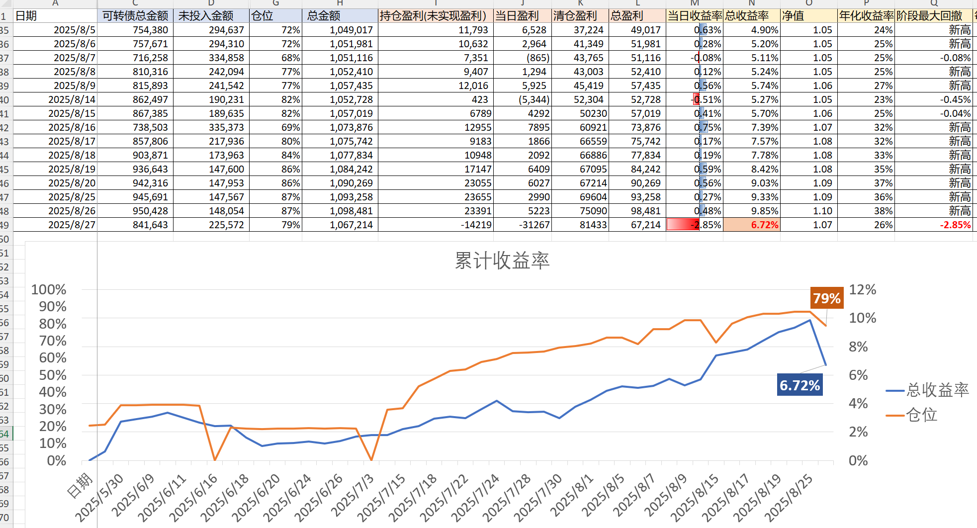 你们说这个月利润跌完了的,是不是夸张了点,我的百万实盘,才跌到8月15号的位置