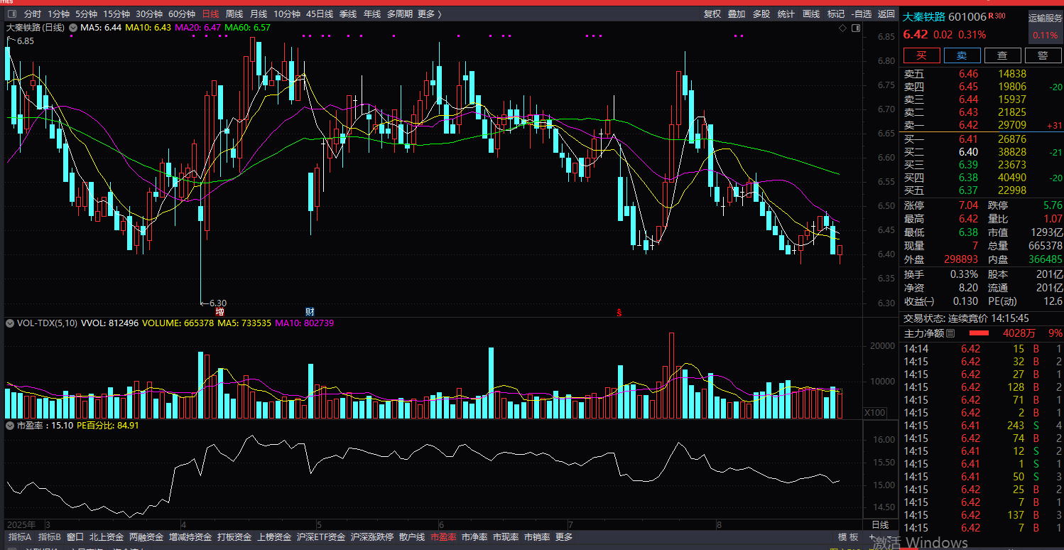 我用的华泰证券的行情有PE百分比,不知道是不是楼主讲的?