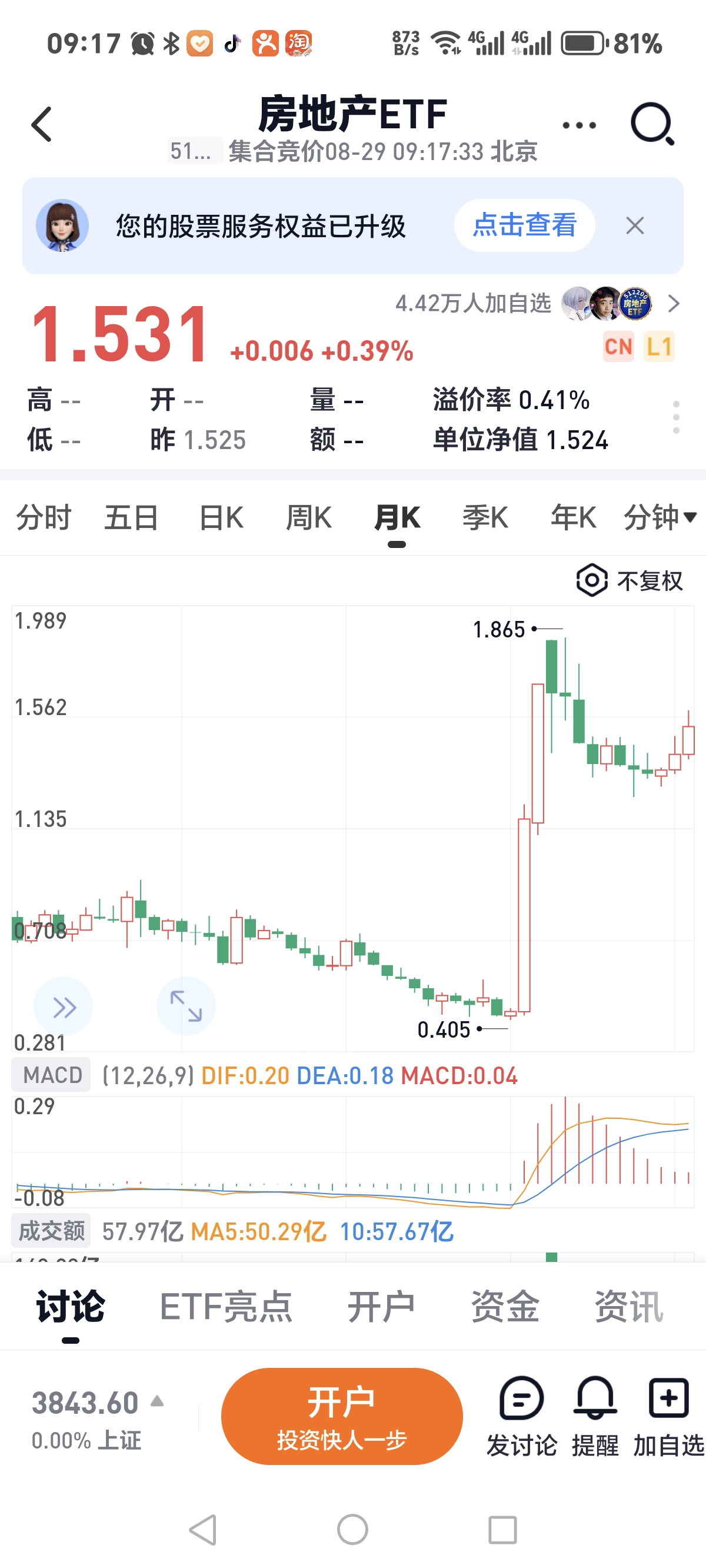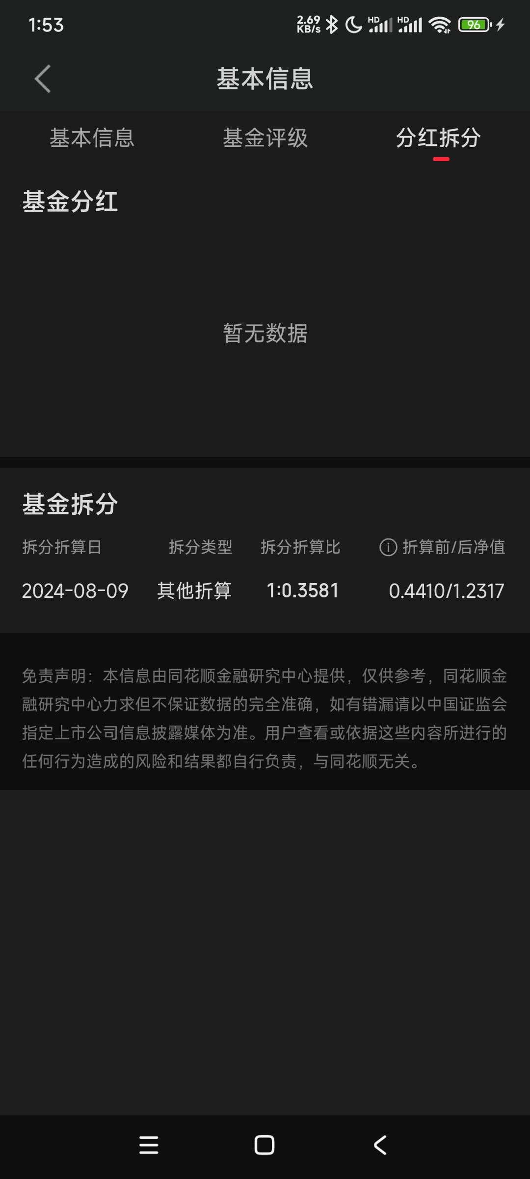 这个房地产(512200)不是拉起来几倍,而是2024年8月9日份额合并了,合并前0.4410元/份,合并后1.2317元/份,1.2317/0.4410=2.793,也就是2.793份合并成1份了。