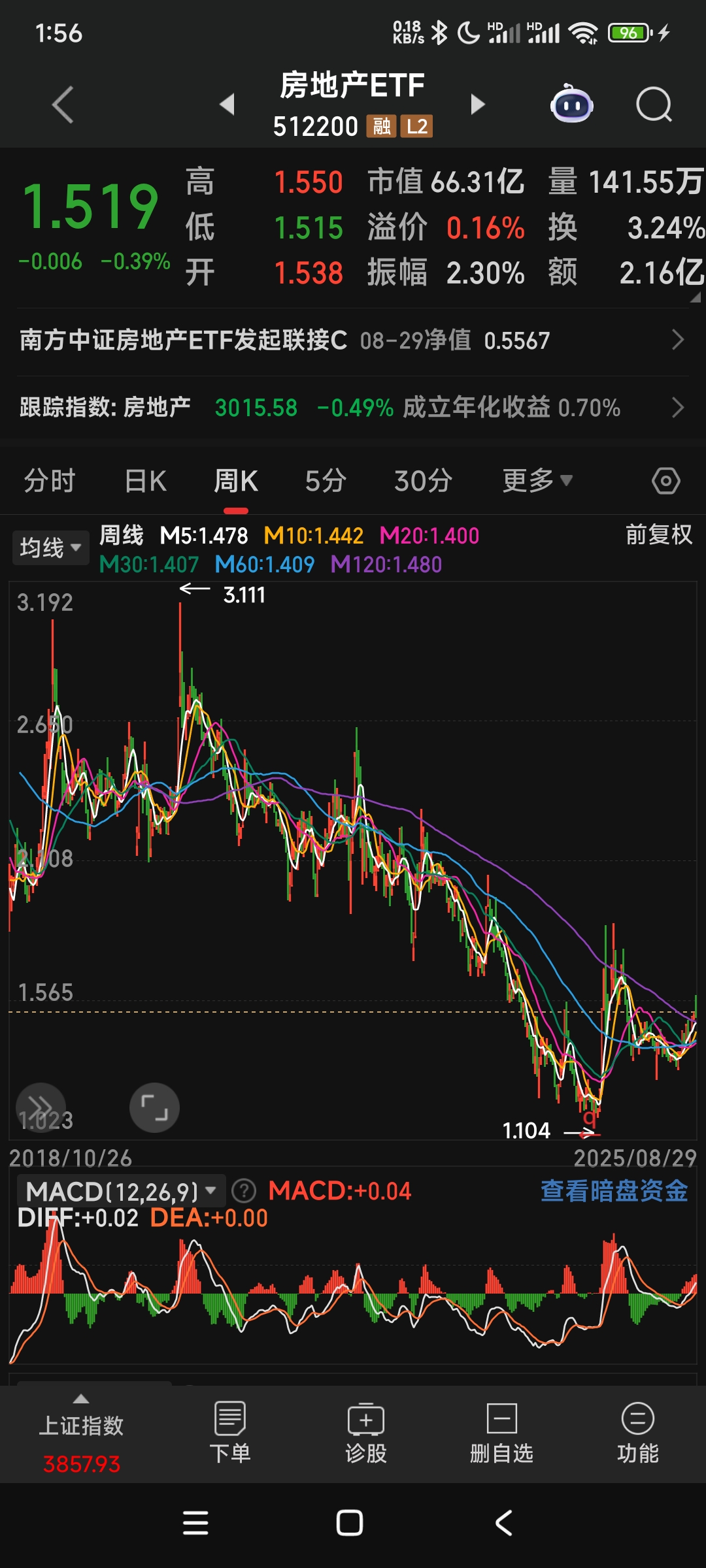 如果房地产(512200)份额不合并的话,2025年8月29日收盘累计净值为0.5429元/份。