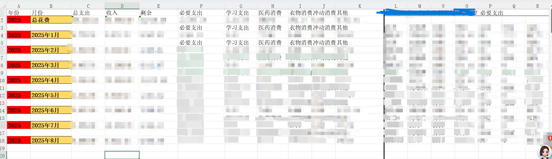 当月的开支单独记录,然后会同步到年月的汇总里,没有用APP,用Excel设计要更符合自己的需求
