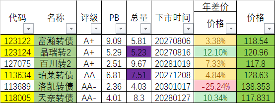 其它4个目前溢价率比较高,向上弹性太小,所以暂时观望。