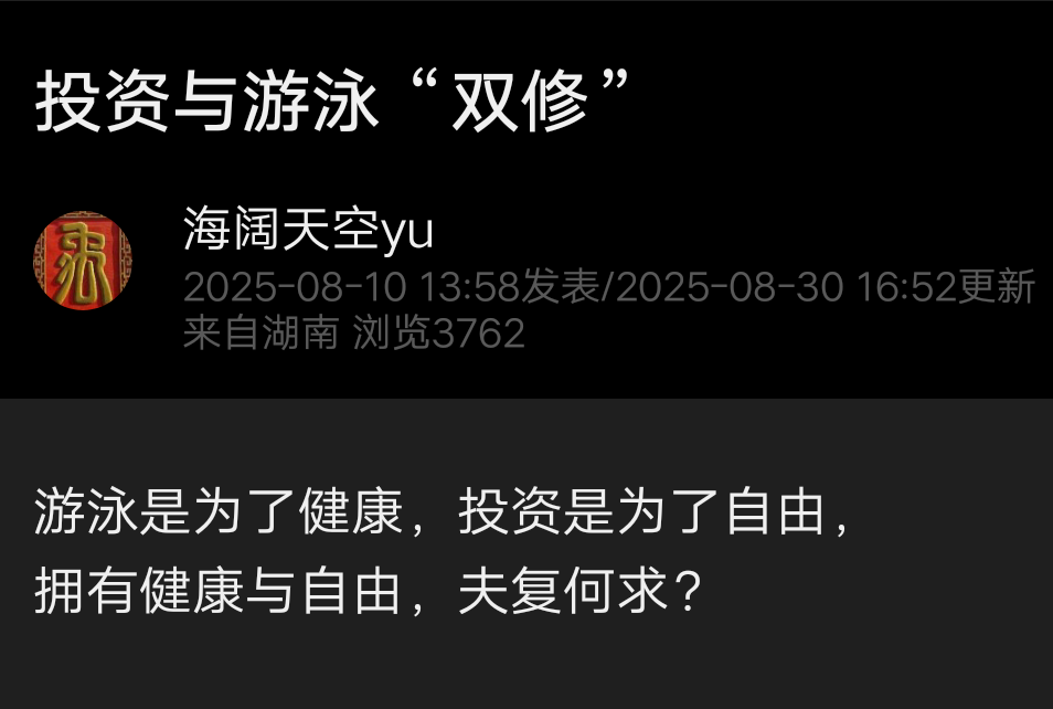 对于我来说,投资是一种爱好,是一件既能让我不断学习成长,又能享受过程,还能顺带收获满满的事情。