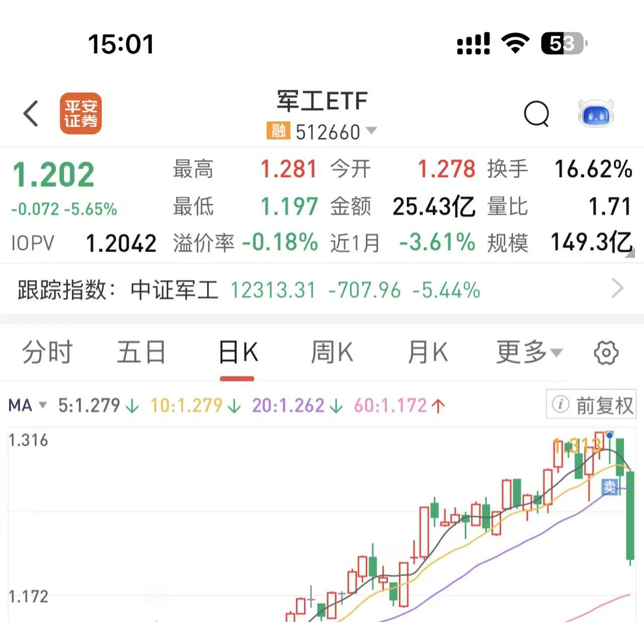 上个星期买了军工ETF,今天一看玩了个寂寞。