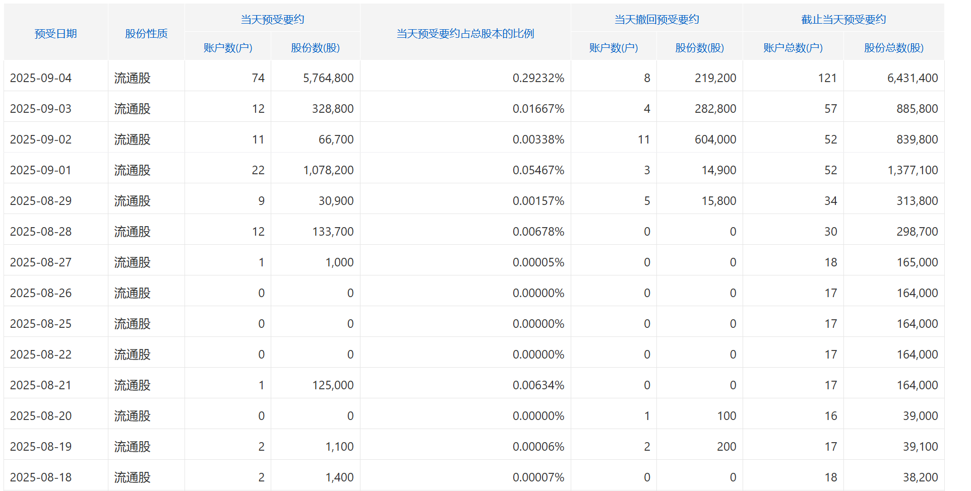 当前最新要约进展预受6,431,400股,预定收购98,605,000股,进展6.5%,