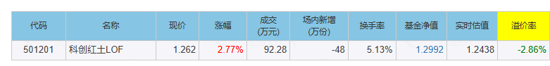 501201科创红土LOF折价2.8%