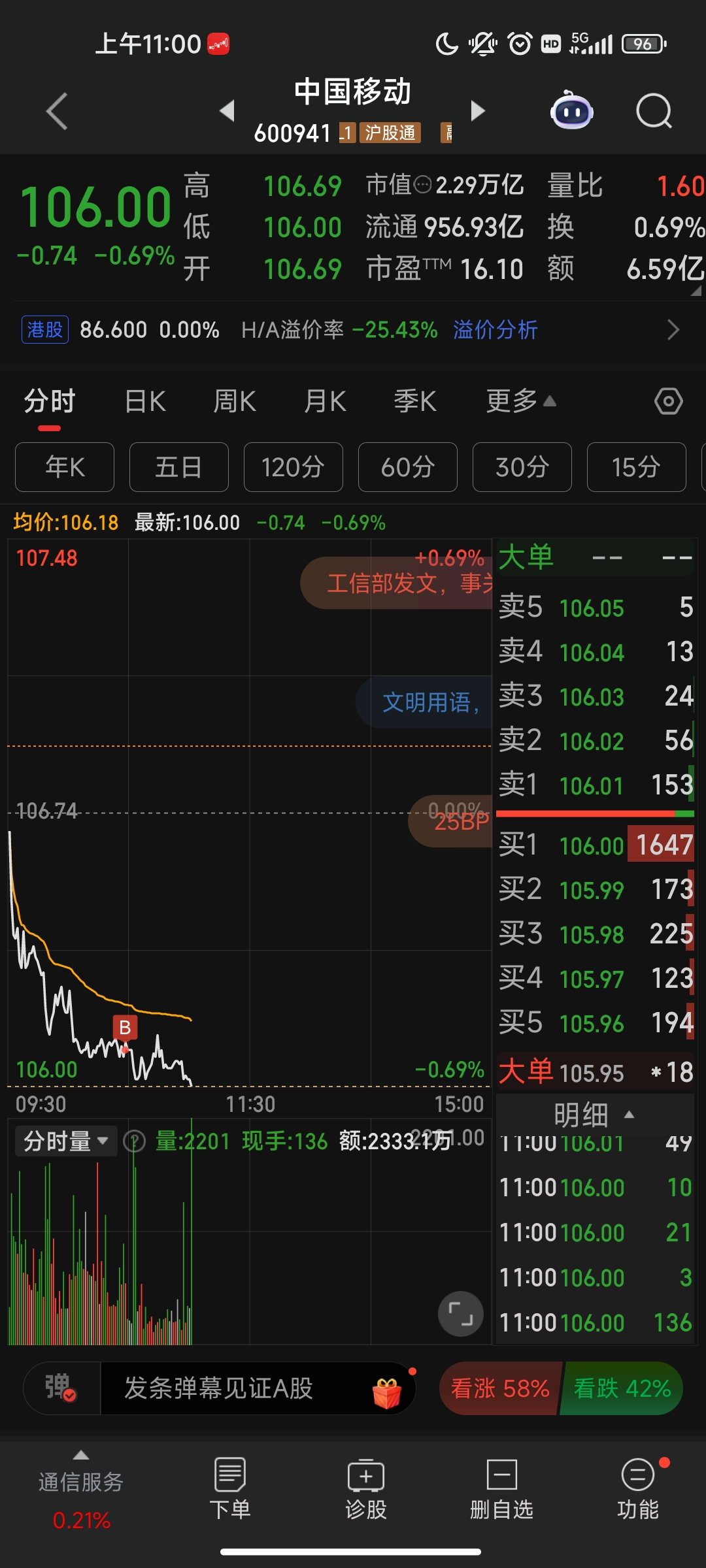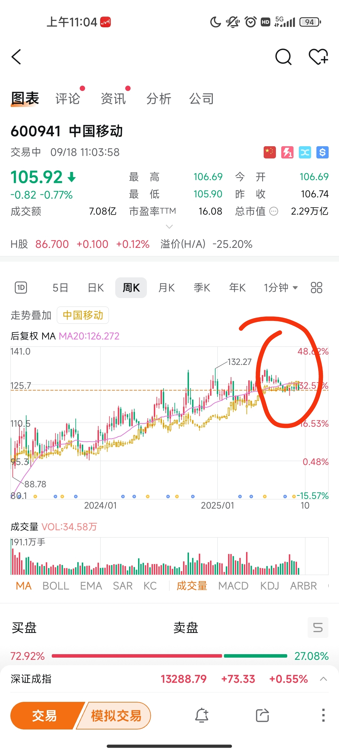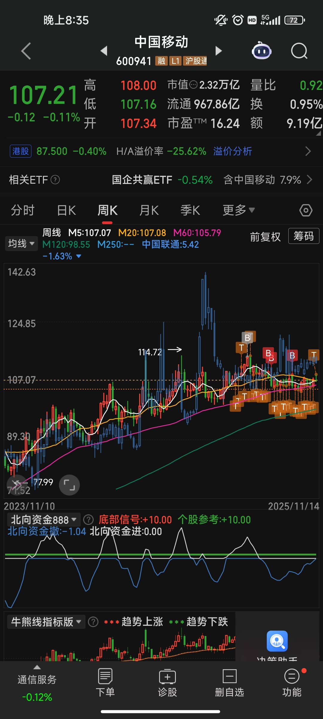 股息率常年5%左右,A股还免红利税;5G资本开支已过高峰,现金流逐年回升;政策压制估值,但正好给长线资金低价攒股机会。每年股息4.3%以上,远超定存。