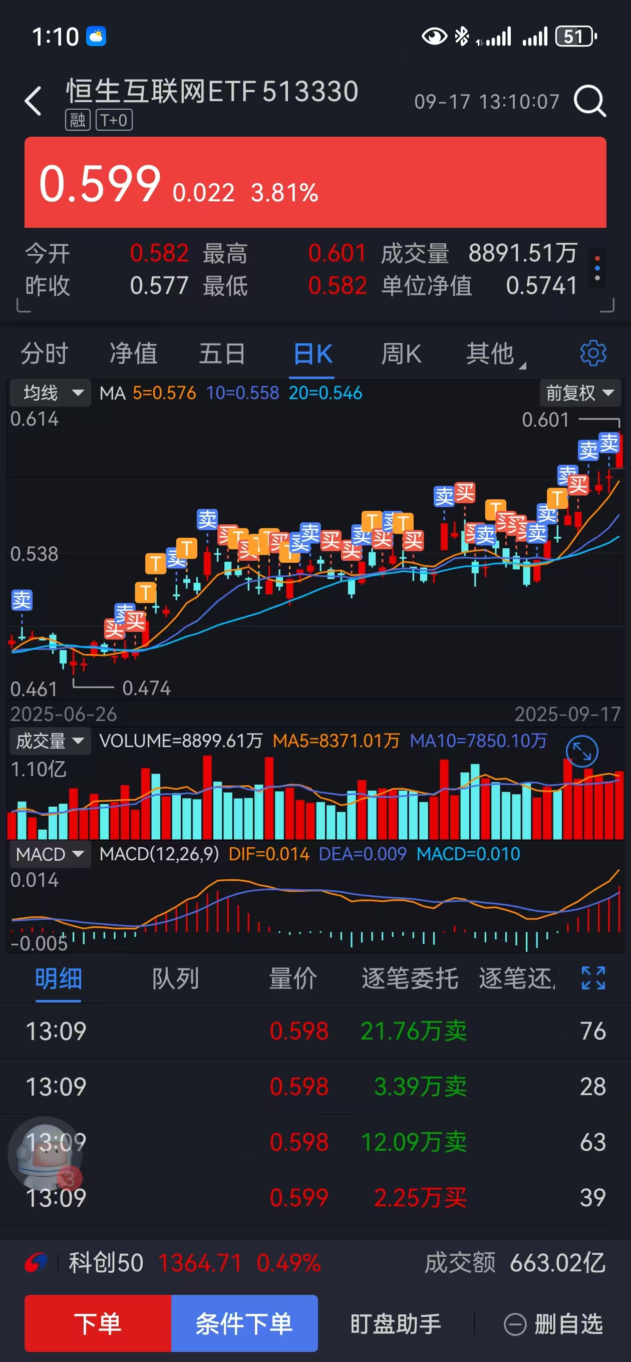 这一只互联网ETF,我也买卖好几回了,感觉还能涨。