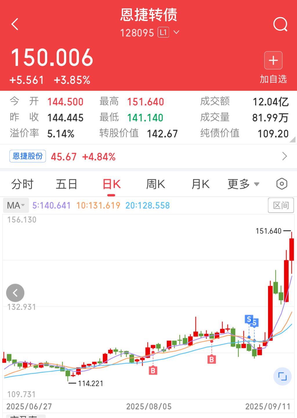 转股价值是转债价格的核心支撑,恩捷转债前期转股值已稳定在120-125区间,距离130的转股行权关键阈值仅一步之遥。对于上市公司而言,推动转债转股价值130以上区间运行,可引导投资者转股以偿还4.5亿元债务,因此具备明确的做多动能。