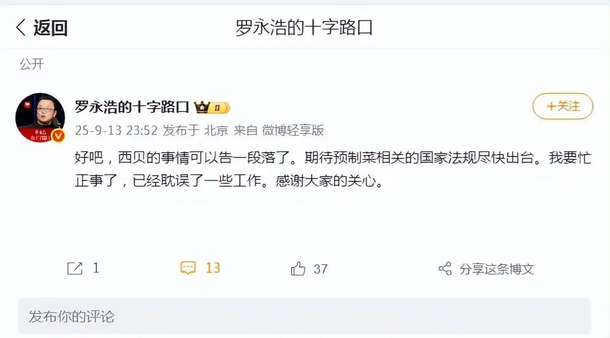 首先,以我的认知,所有连锁餐饮基本都是预制菜,或是西贝称的中央厨房。只要是连锁只能是这样,因为品控和卫生要求决定了不可能有其他选择。我都知道的事,罗永浩不可能需要去尝了才知道,大概率去之前就知道,应该属于找茬碰瓷型的。要说老罗去之前以为西贝是明火灶炒菜,谁爱信谁信,我是不信,因为不科学。