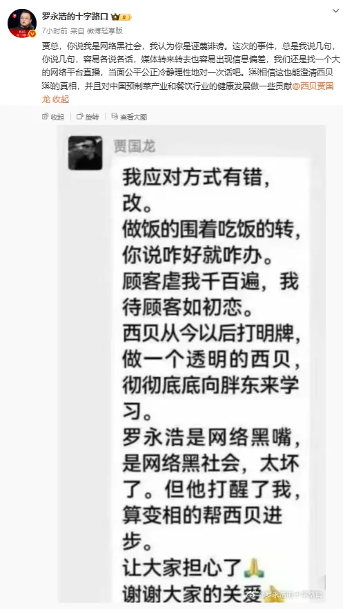 事情大家都了解了,老罗去西贝吃了顿饭,没吃爽,说人家是预制菜,而且真恶心。